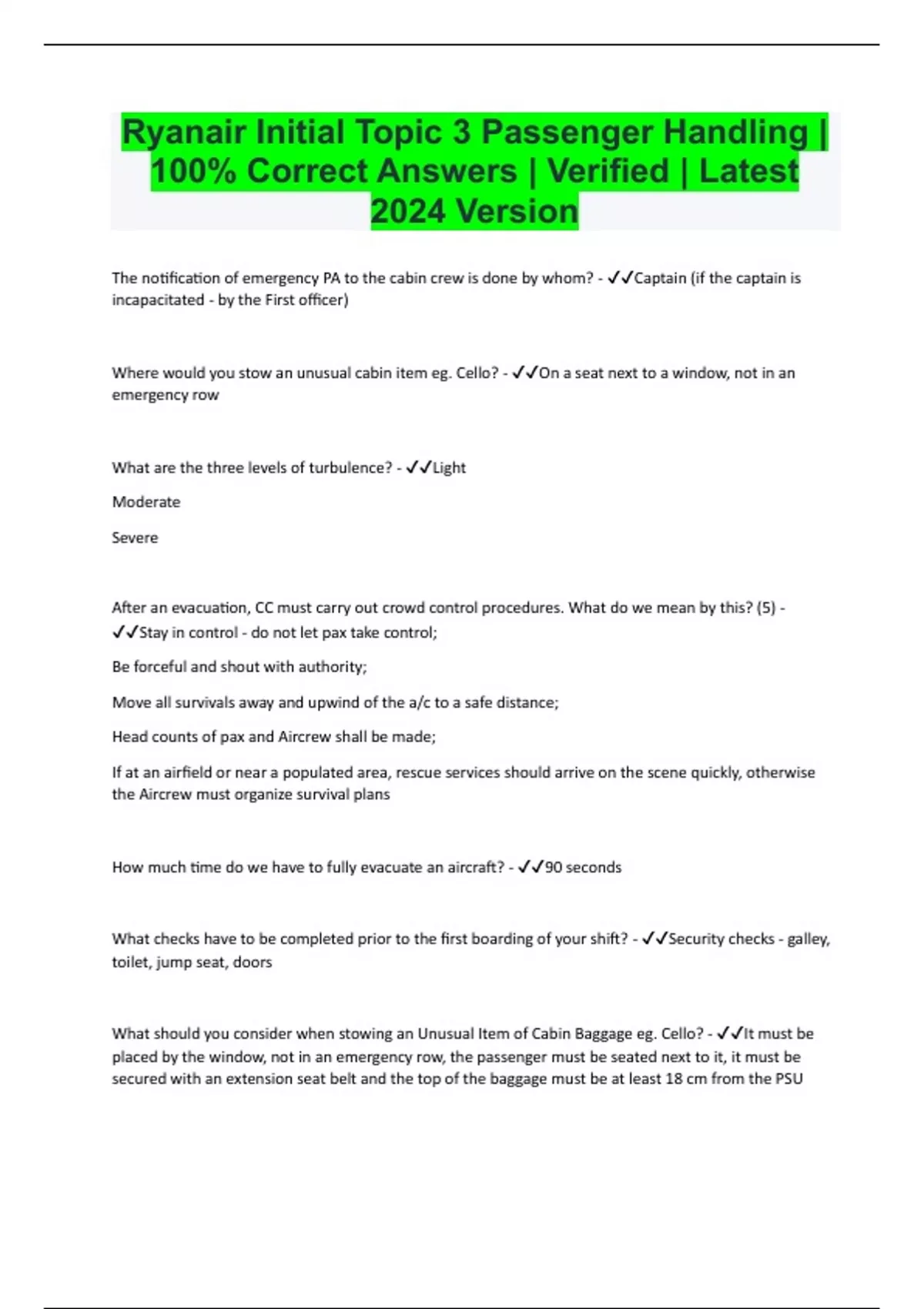 Ryanair Initial Topic 3 Passenger Handling | 100% Correct Answers | Verified | Latest 2024 Version
