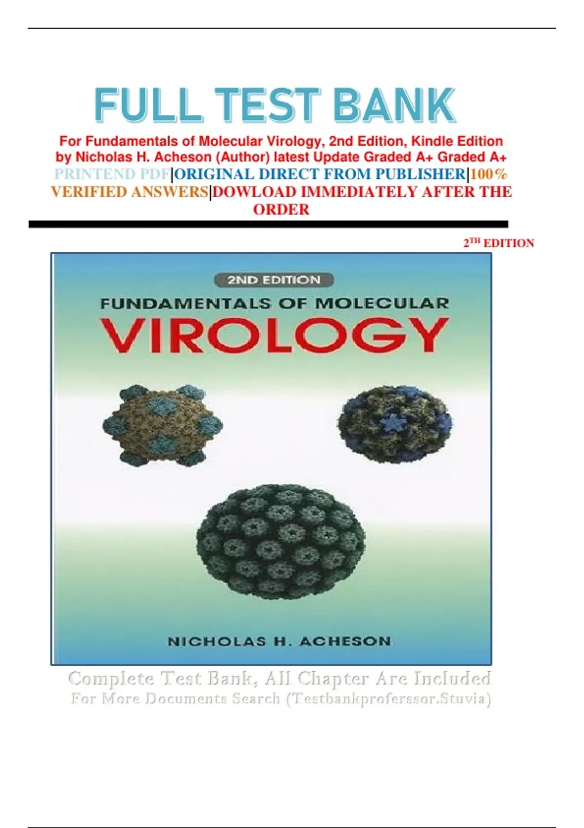 FULL TEST BANK For Fundamentals of Molecular Virology, 2nd Edition, Kindle Edition by Nicholas H. Acheson (Author) latest Update Graded A+ Graded A+