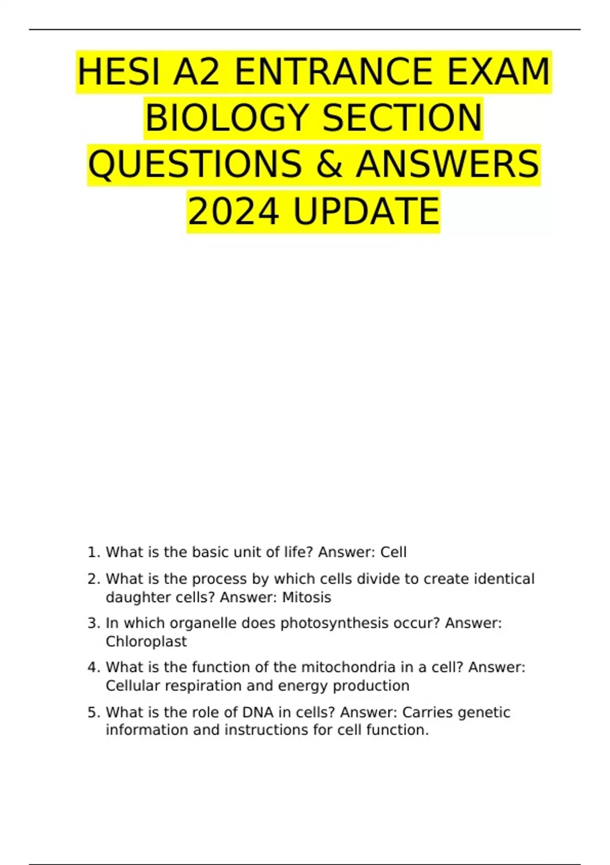 - HESI A2 ENTRANCE BIOLOGY 2024