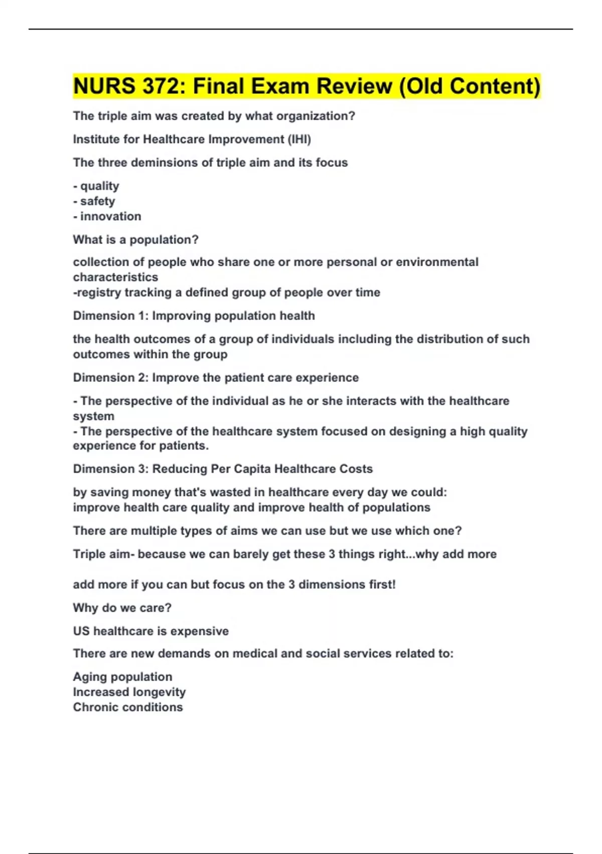 The three deminsions of triple aim and its focus