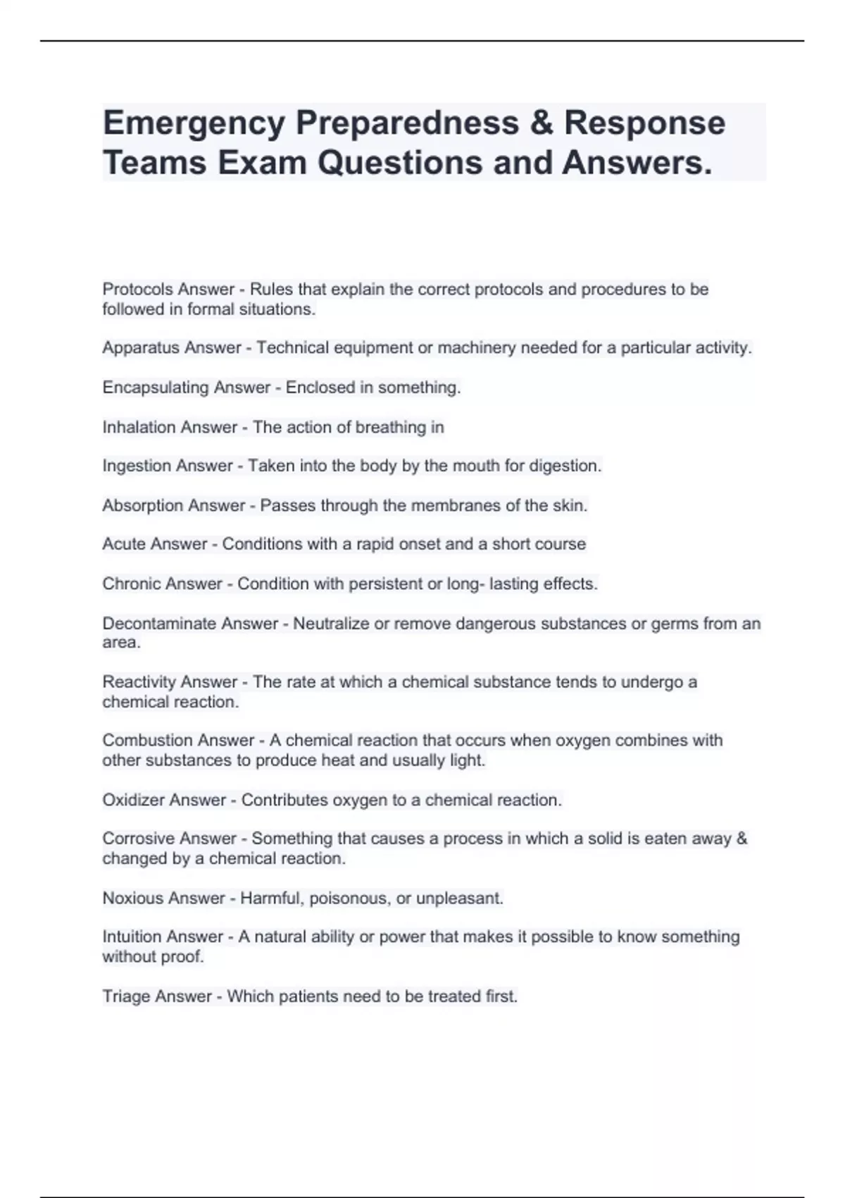 Emergency Preparedness & Response Teams Exam Questions and Answers