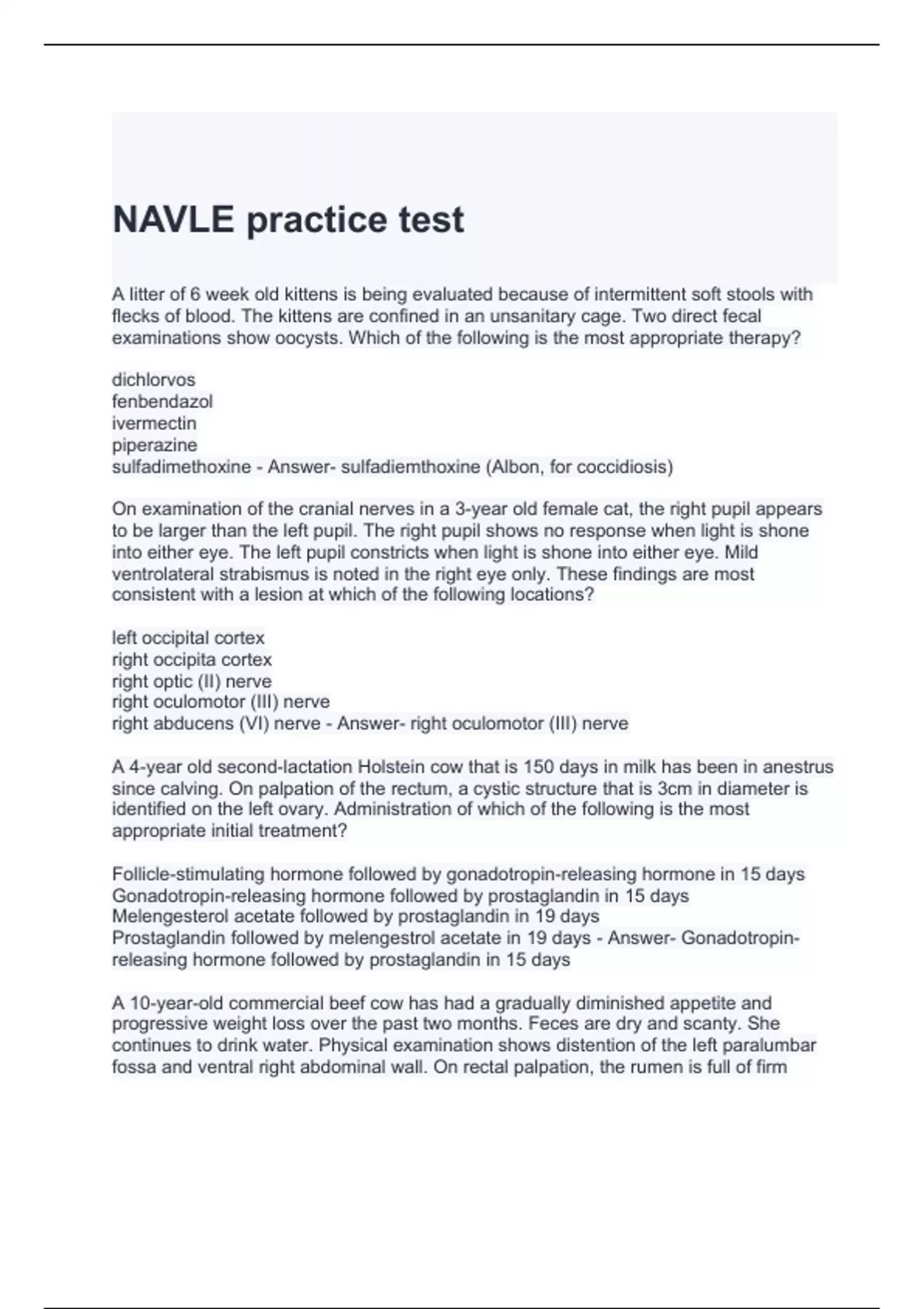 NAVLE practice test with correct answers