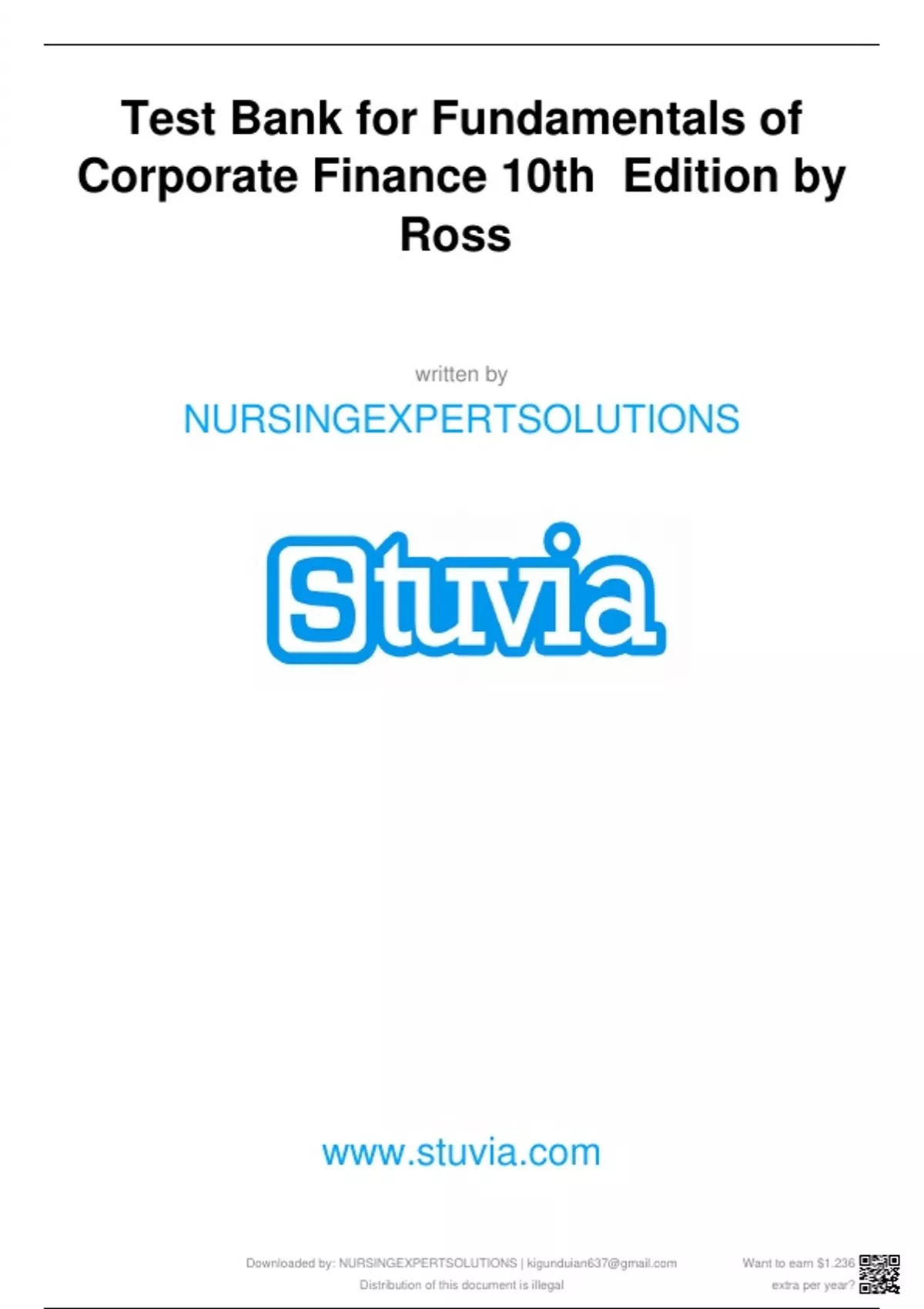 Test Bank for Fundamentals of Corporate Finance 10th Edition by Ross