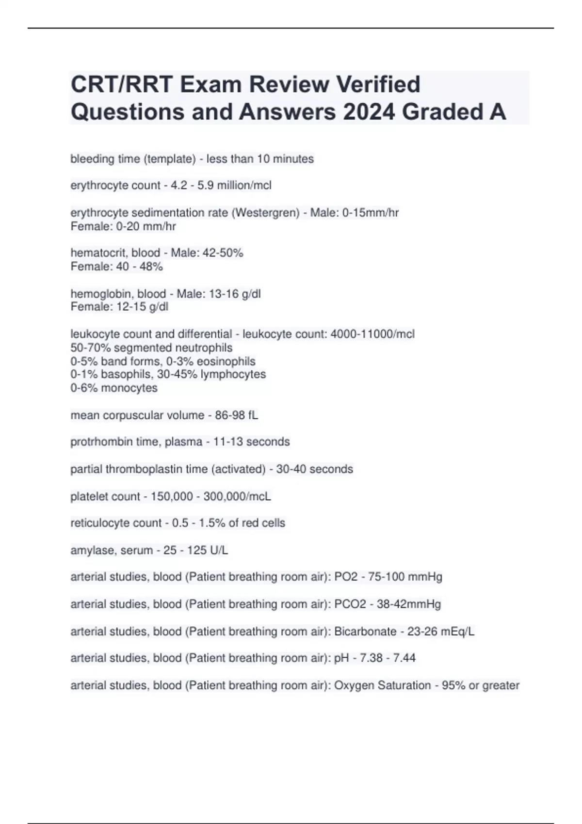 CRT/RRT Exam Review Verified Questions and Answers 2024 Graded A