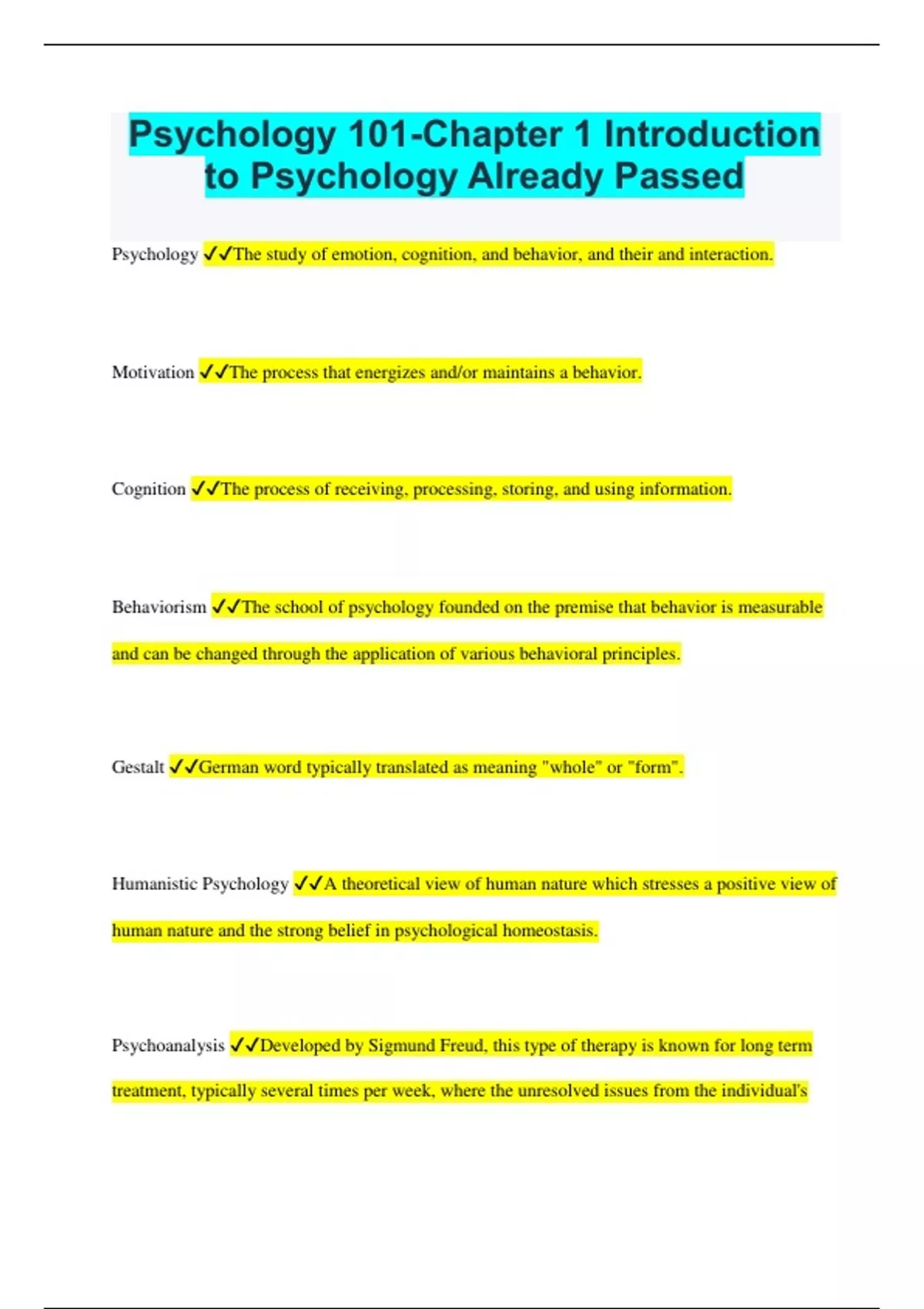 Psychology 101-Chapter 1 Introduction to Psychology Already Passed