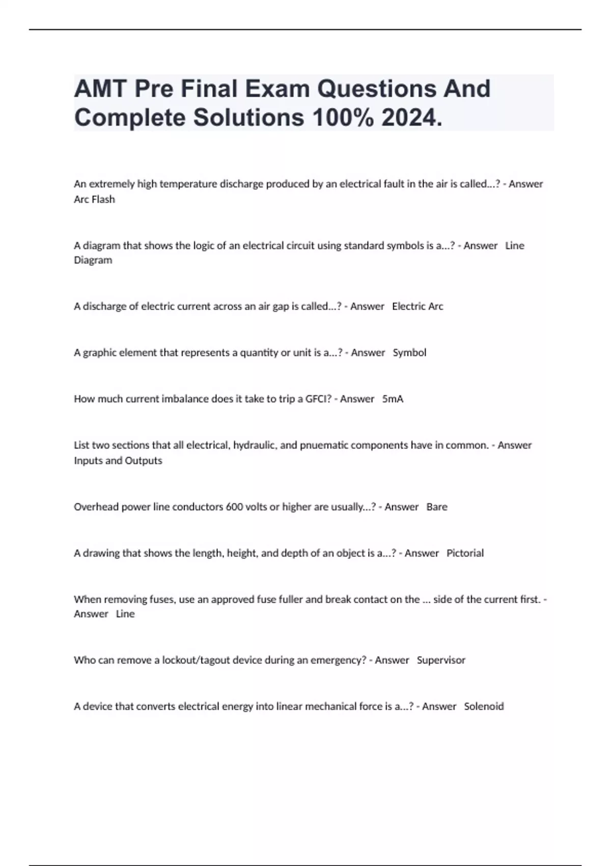 AMT Pre Final Exam Questions And Complete Solutions 100% 2024.