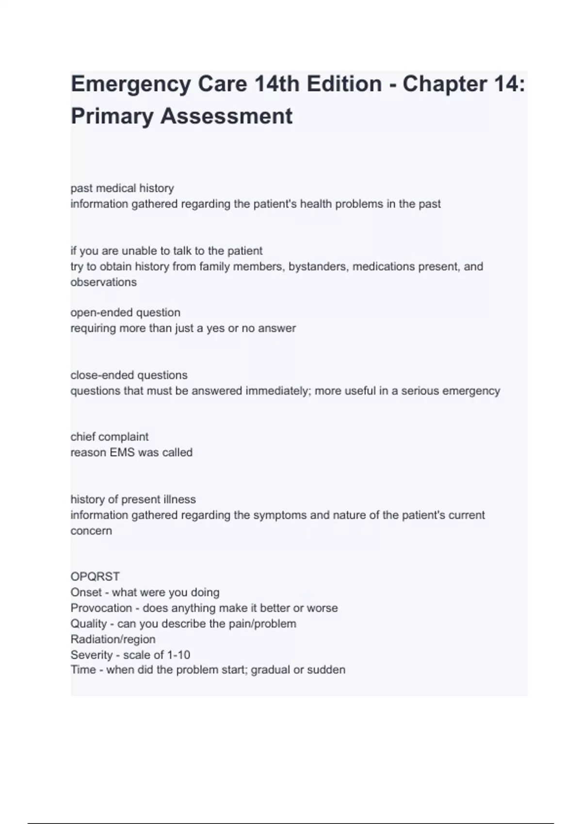 Emergency Care 14th Edition - Chapter 14: Primary Assessment with complete solution