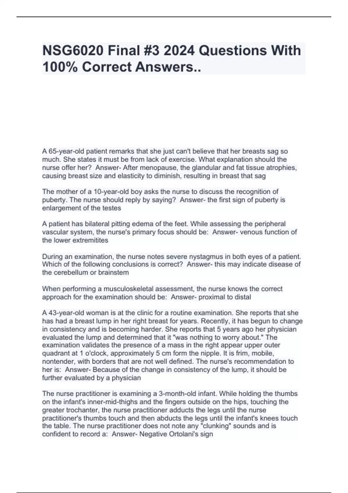 NSG6020 Final #3 2024 Questions With 100% Correct Answers..
