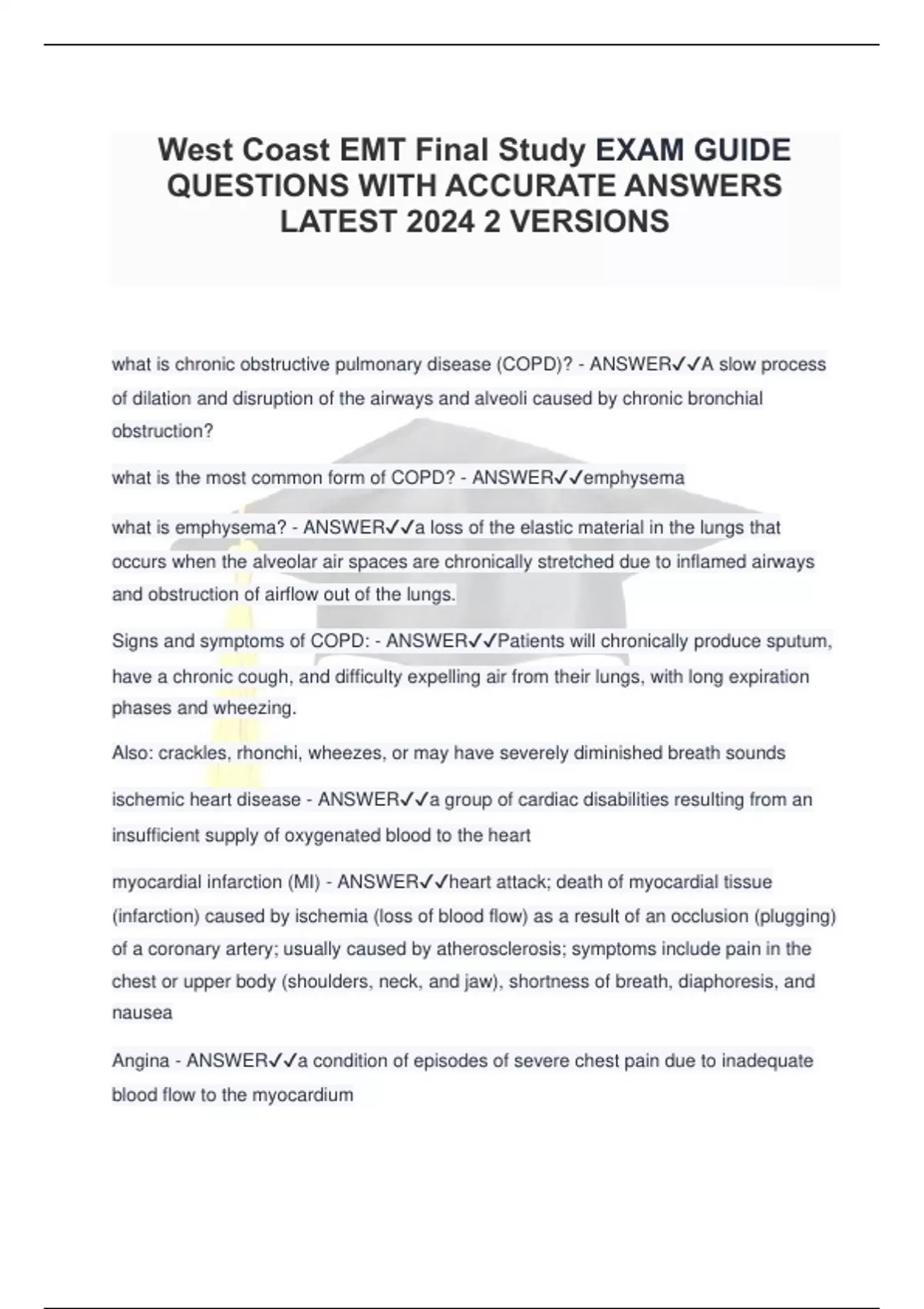 West Coast EMT Final Study EXAM GUIDE QUESTIONS WITH ACCURATE ANSWERS LATEST 2024 2 VERSIONS