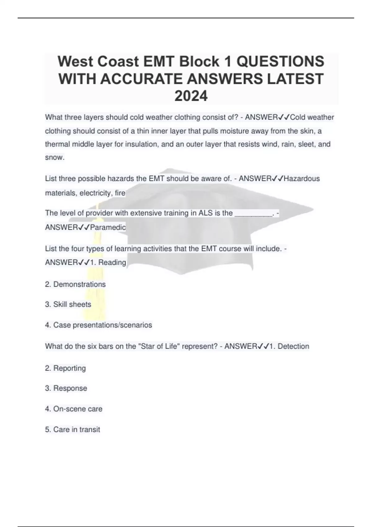 West Coast EMT Block 1 QUESTIONS WITH ACCURATE ANSWERS LATEST 2024