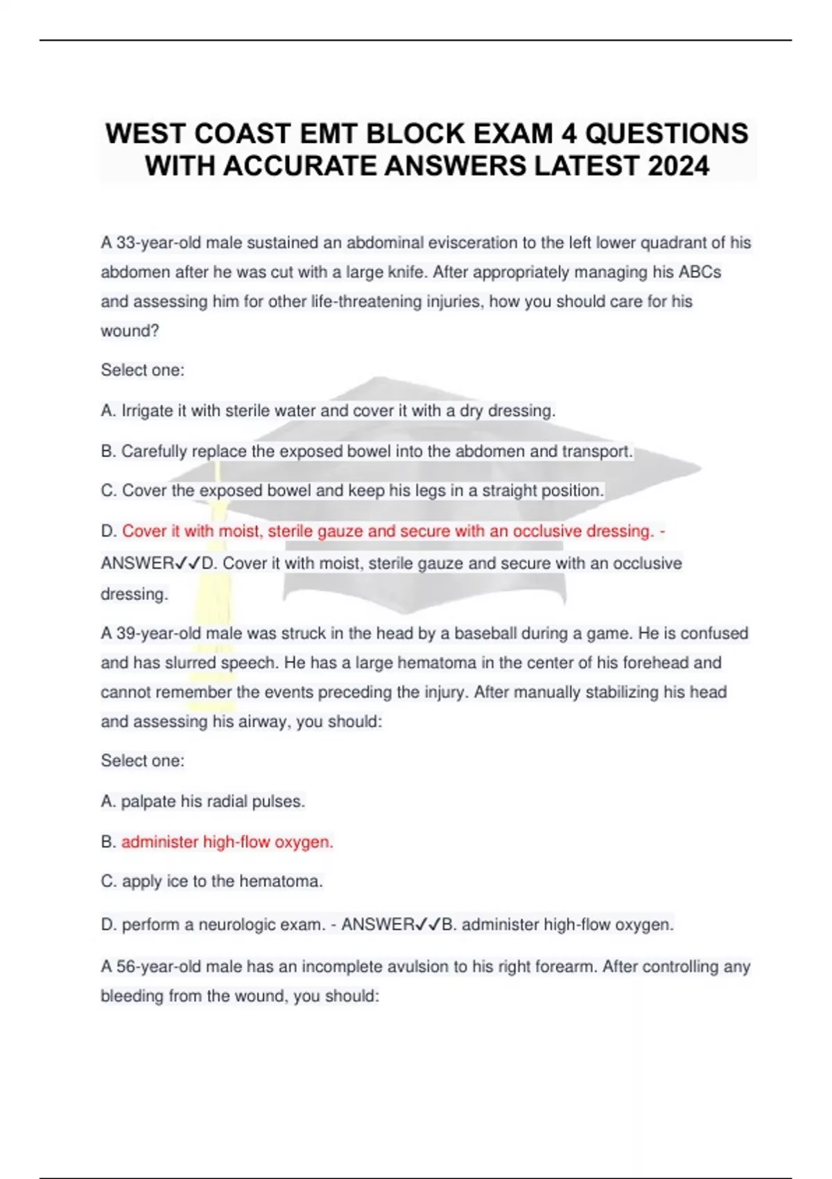 WEST COAST EMT BLOCK EXAM 4 QUESTIONS WITH ACCURATE ANSWERS LATEST 2024