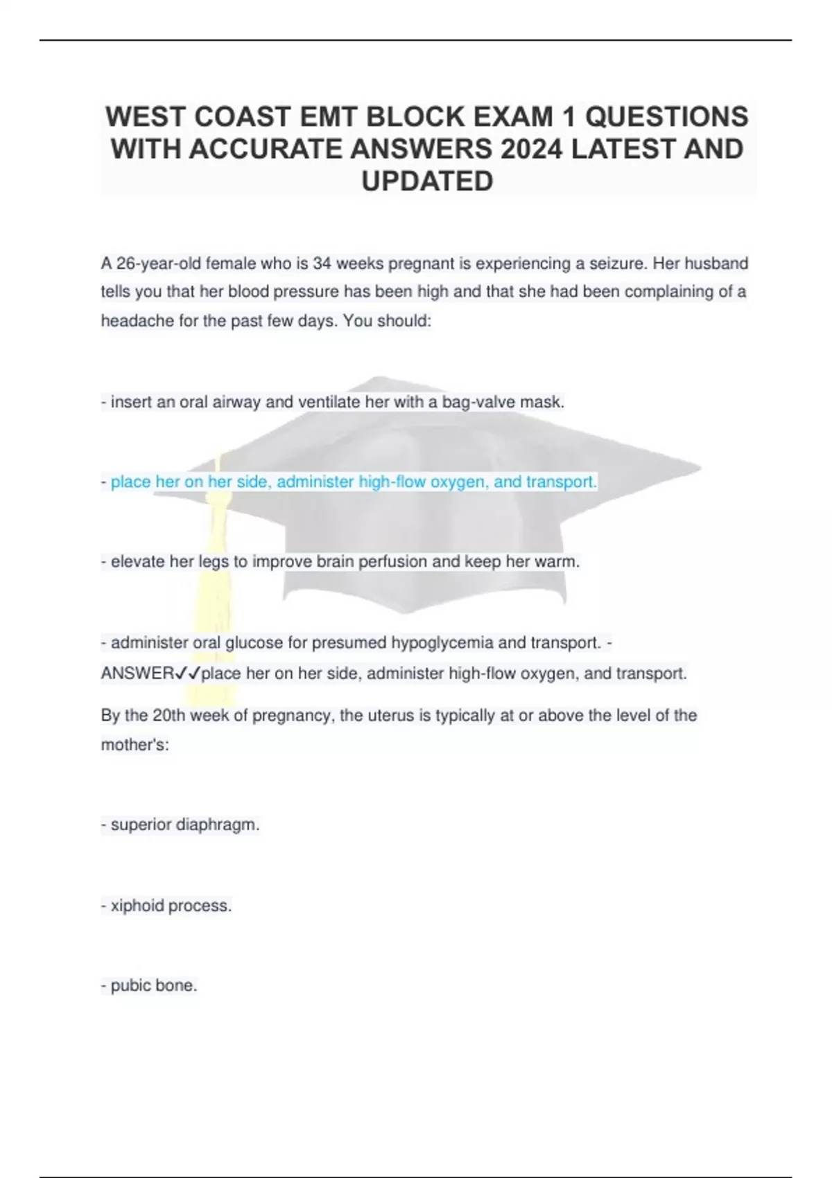 WEST COAST EMT BLOCK EXAM 1 QUESTIONS WITH ACCURATE ANSWERS 2024 LATEST AND UPDATED