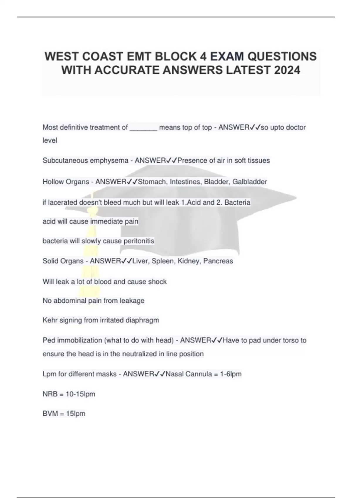 WEST COAST EMT BLOCK 4 EXAM QUESTIONS WITH ACCURATE ANSWERS LATEST 2024.
