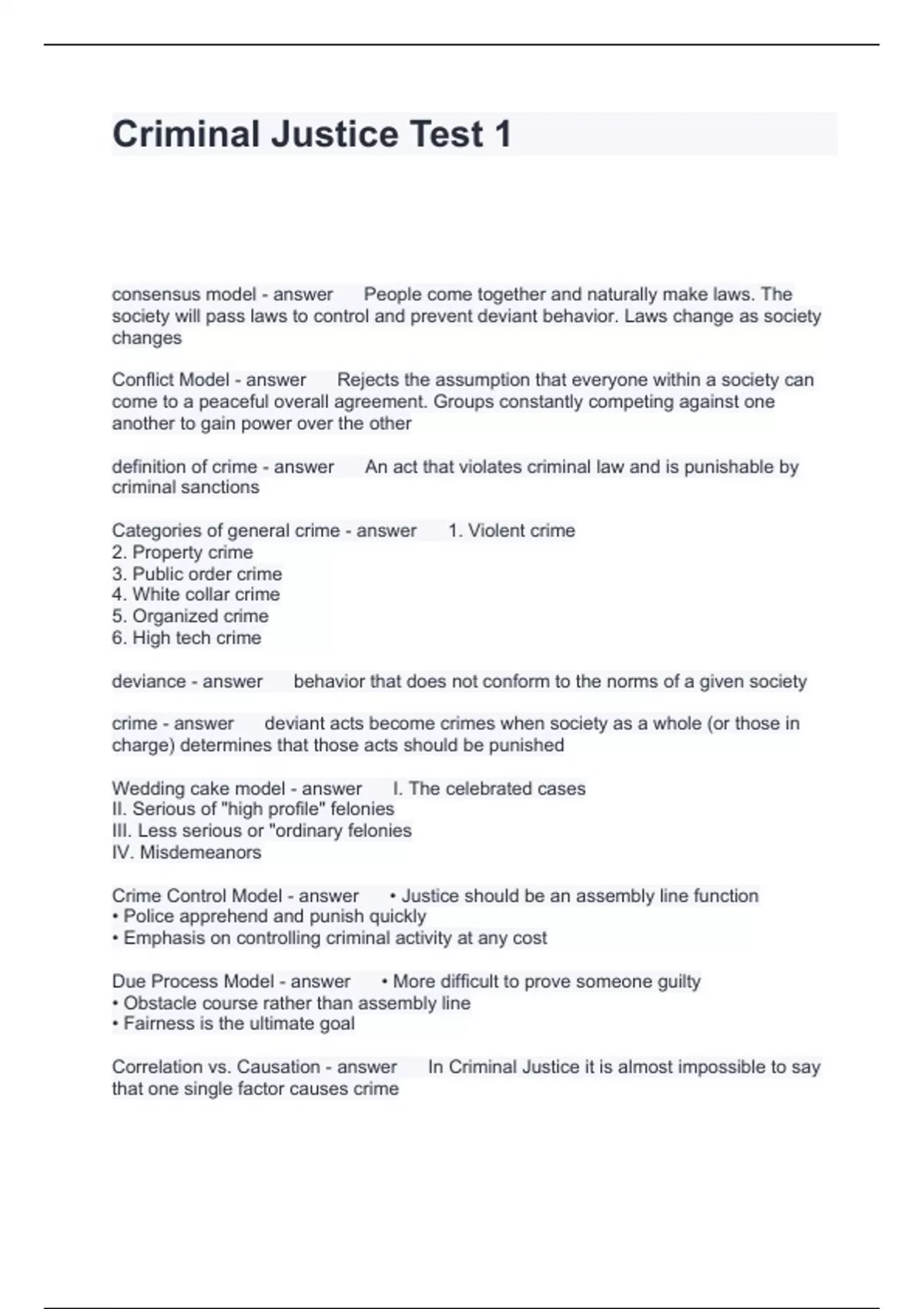 Criminal Justice Test 1 Questions and Answers Fully solved