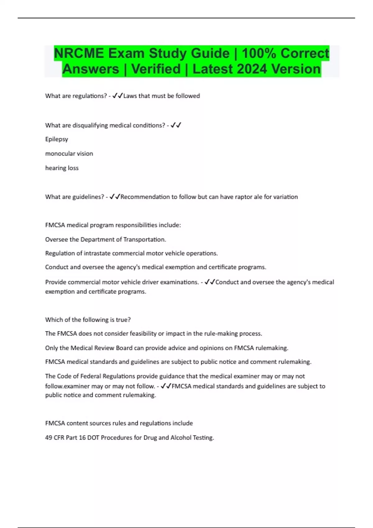 NRCME Exam Study Guide | 100% Correct Answers | Verified | Latest 2024 Version