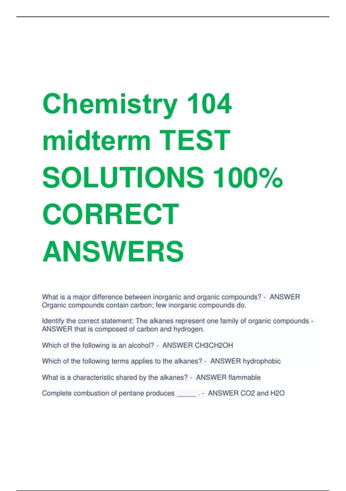 Chemistry 104 midterm TEST SOLUTIONS 100% CORRECT ANSWERS