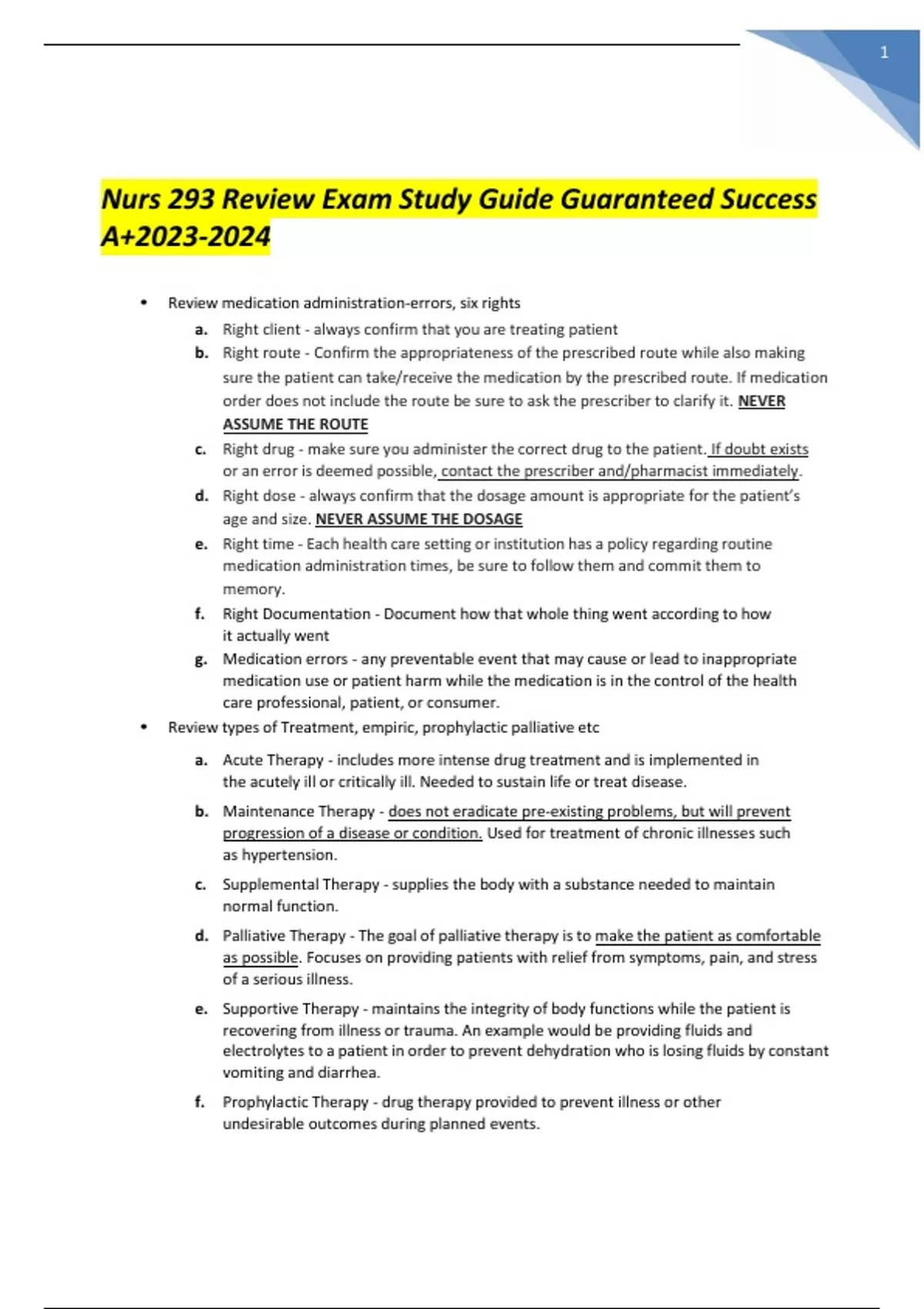 Nurs 293 Review Exam Study Guide Guaranteed Success A
