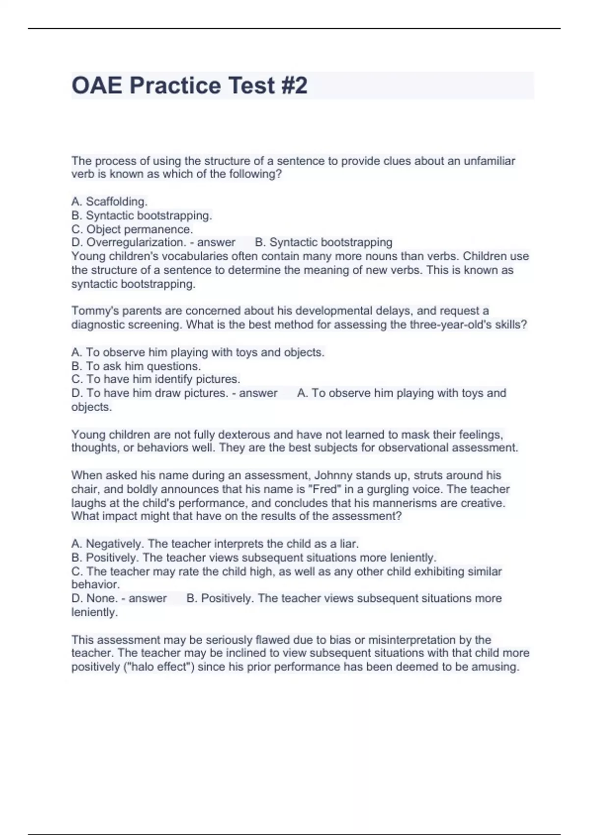 OAE Practice Test Questions and Answers Graded A