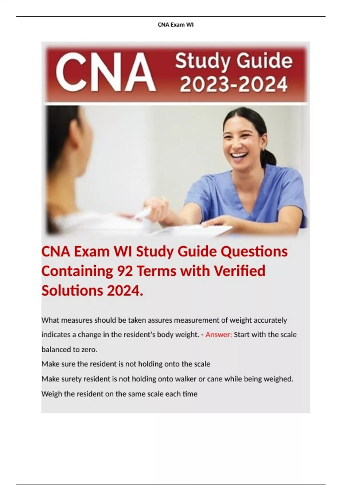 CNA Eam WI Study Gide Quetions Containing 92 Te