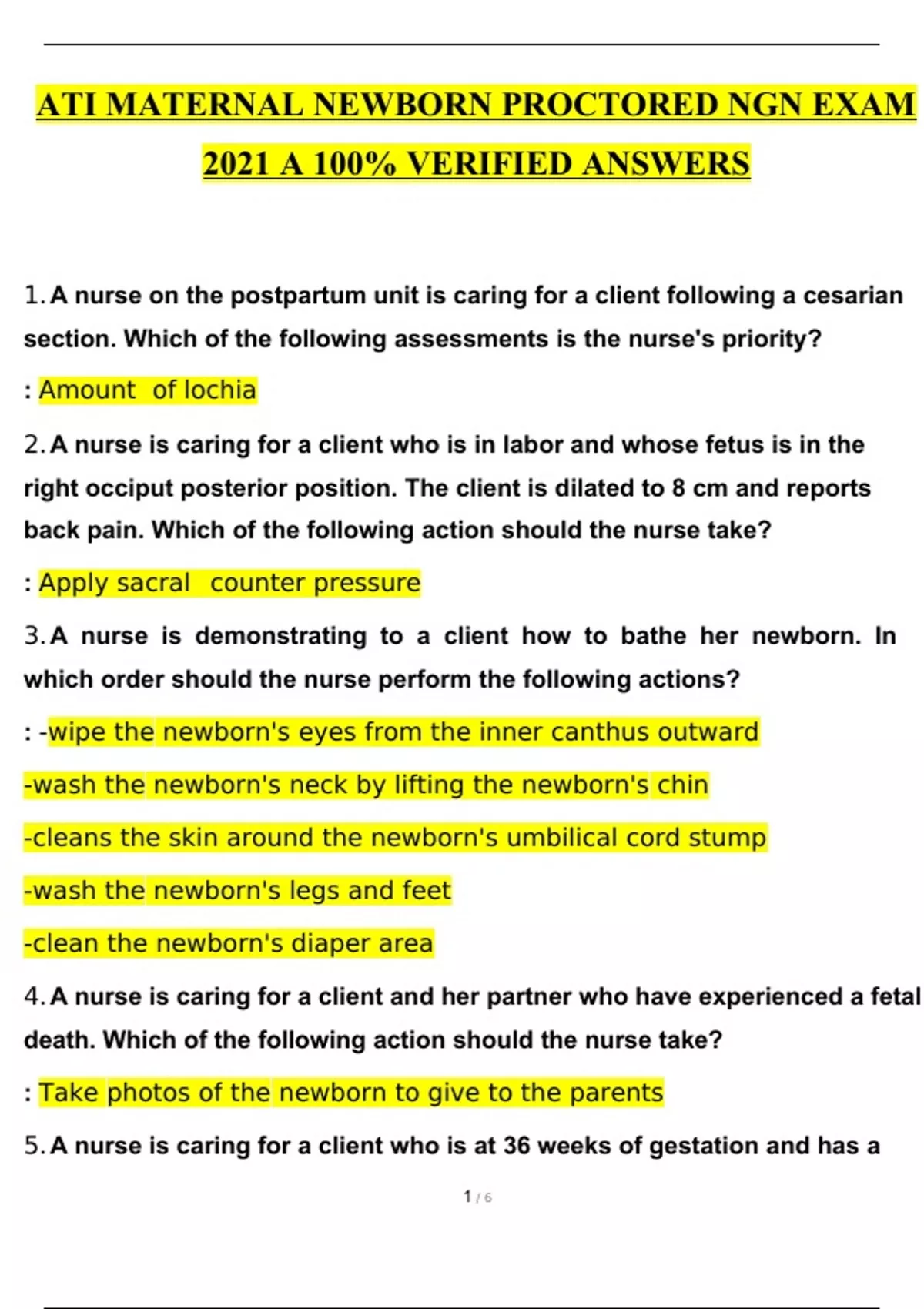 ATI MATERNAL NEWBORN PROCTORED NGN EXAM 2021 A 100% VERIFIED QUESTIONS AND ANSWERS