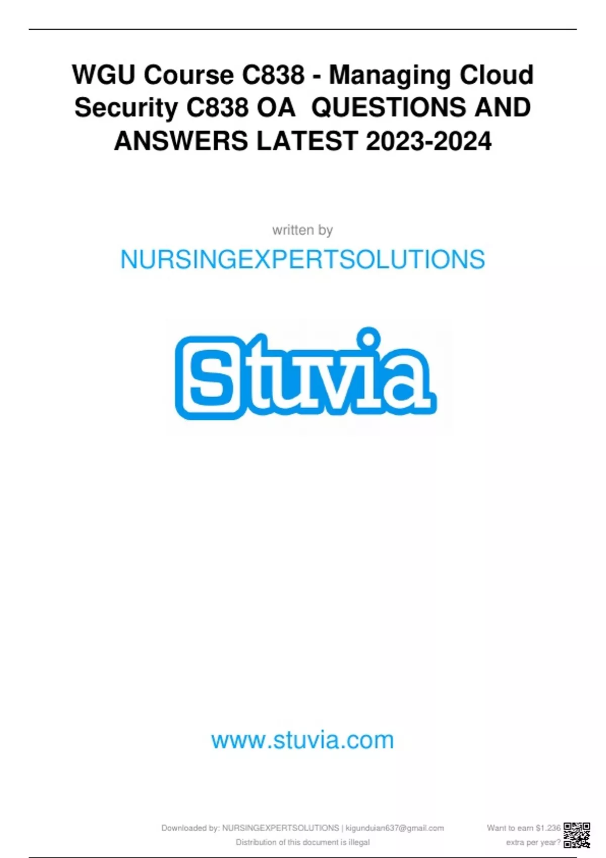 WGU Course C838 - Managing Cloud Security C838 OA QUESTIONS AND ANSWERS LATEST
