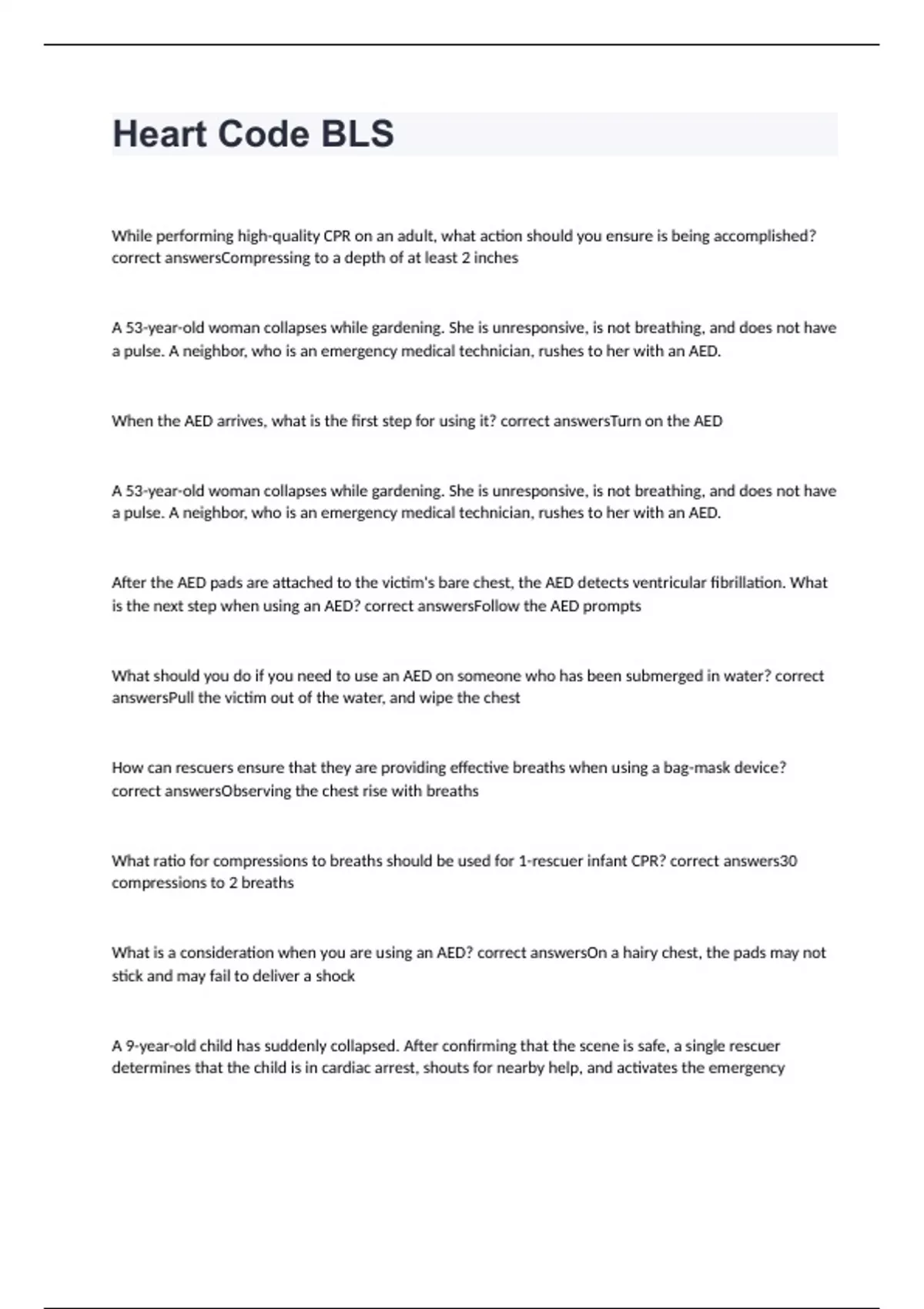 When the AED arrives, what is the first step for using it? correct answersTurn on the AED
