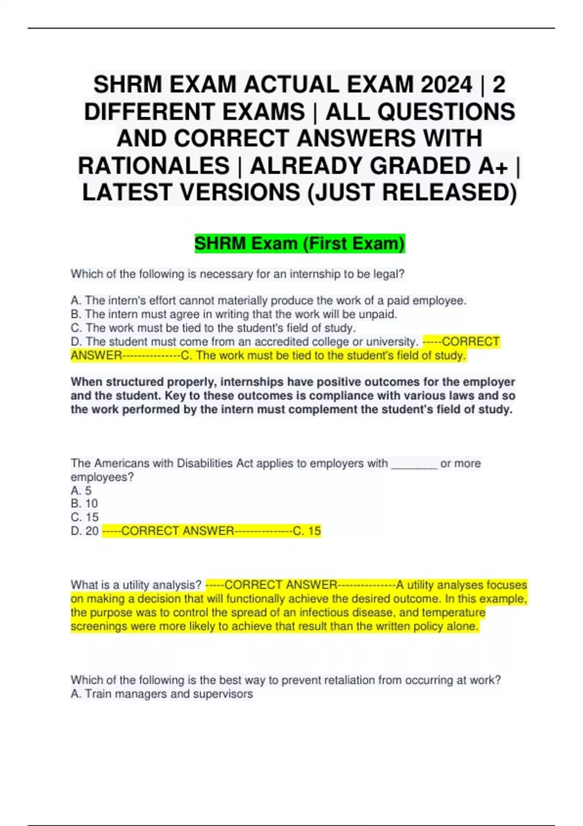 SHRM EXAM ACTUAL EXAM 2024 | 2 DIFFERENT EXAMS | ALL QUESTIONS AND CORRECT ANSWERS WITH RATIONALES | ALREADY GRADED A+ | LATEST VERSIONS (JUST RELEASED)