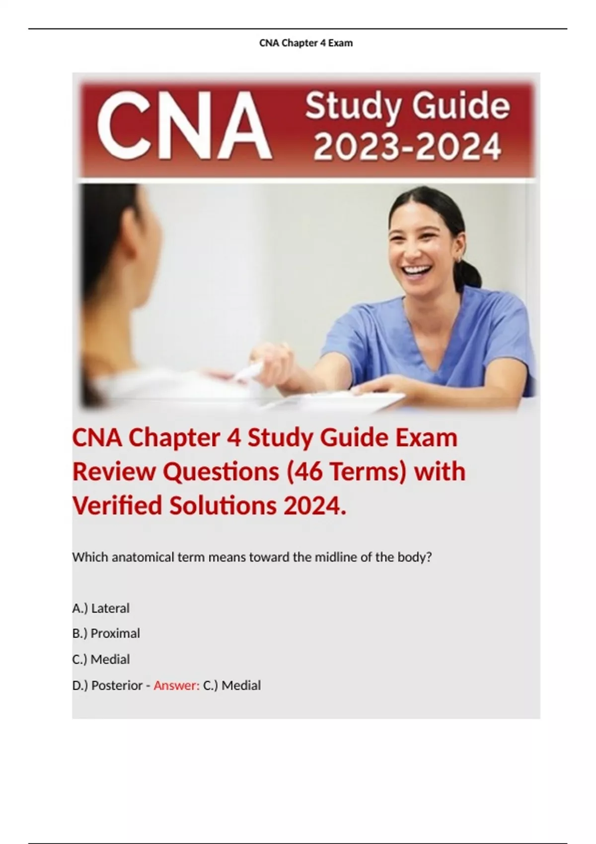 CNA Chapter 4 Study Guide Exam