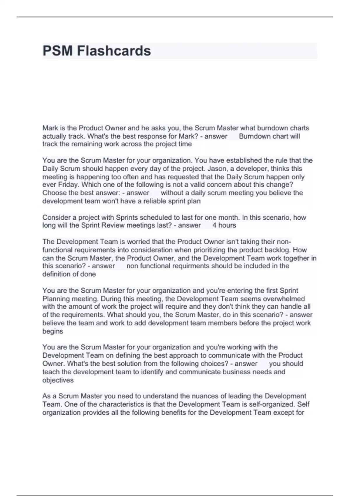 PSM Flashcards Questions and Answers 2024