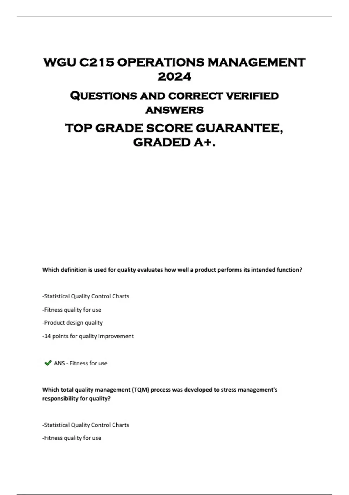WGU C215 OPERATIONS MANAGEMENT 2024 Questions and correct verified answers TOP GRADE SCORE GUARANTEE, GRADED A+.