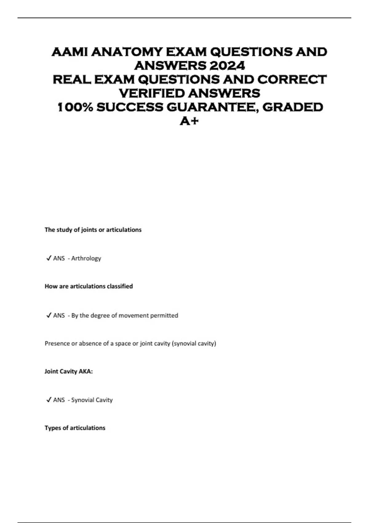 AAMI ANATOMY EXAM QUESTIONS AND ANSWERS 2024 REAL EXAM QUESTIONS AND CORRECT VERIFIED ANSWERS 100% SUCCESS GUARANTEE, GRADED A+