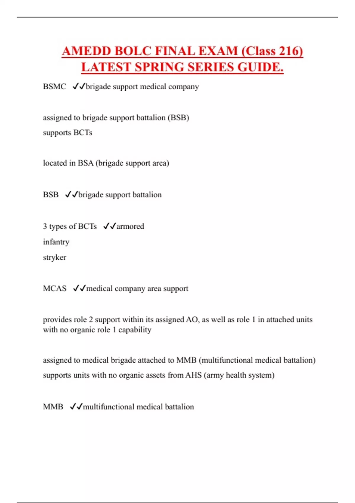 AMEDD BOLC FINAL EXAM (Class 216) LATEST SPRING SERIES GUIDE.
