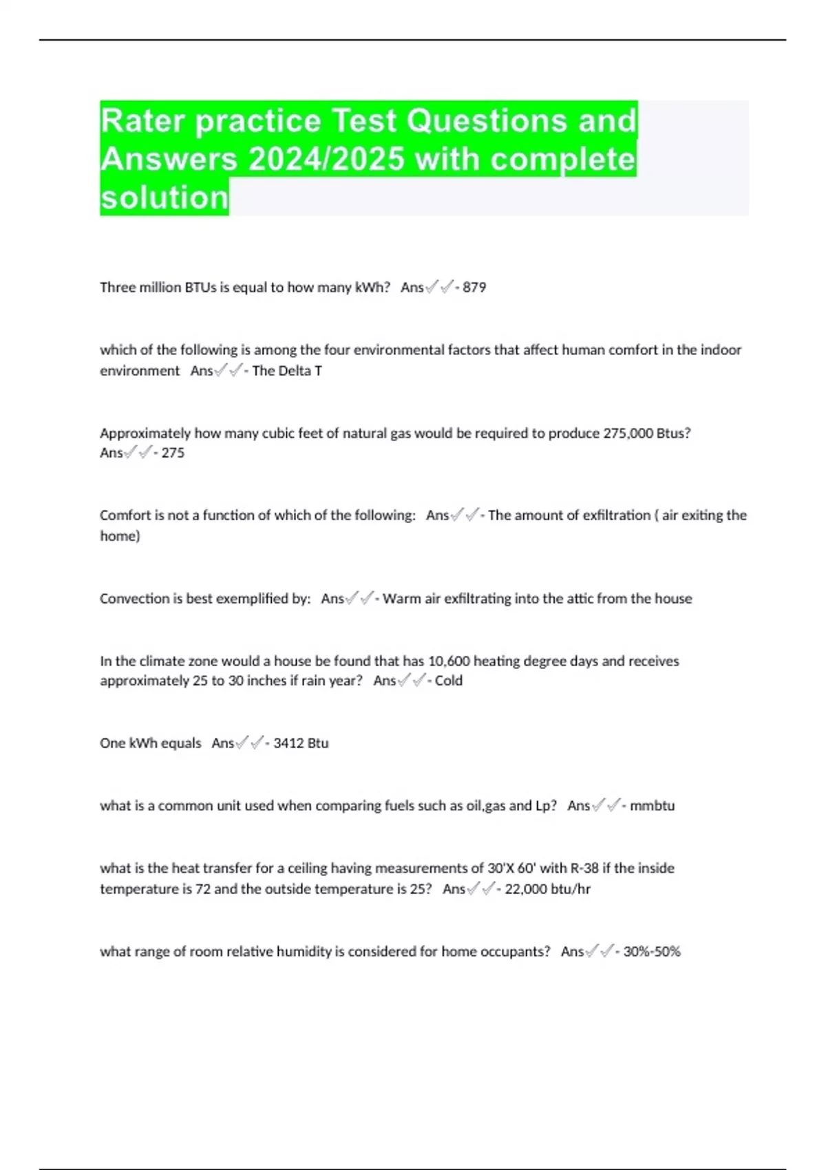 Rater practice Test Questions and Answers 2024/2025 with complete solution