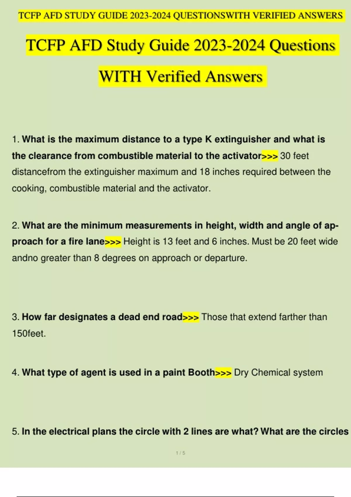 , TCFP AFD STUDY GUIDE 2023-2024 QUESTIONSWITH VERIFIED ANSWERS