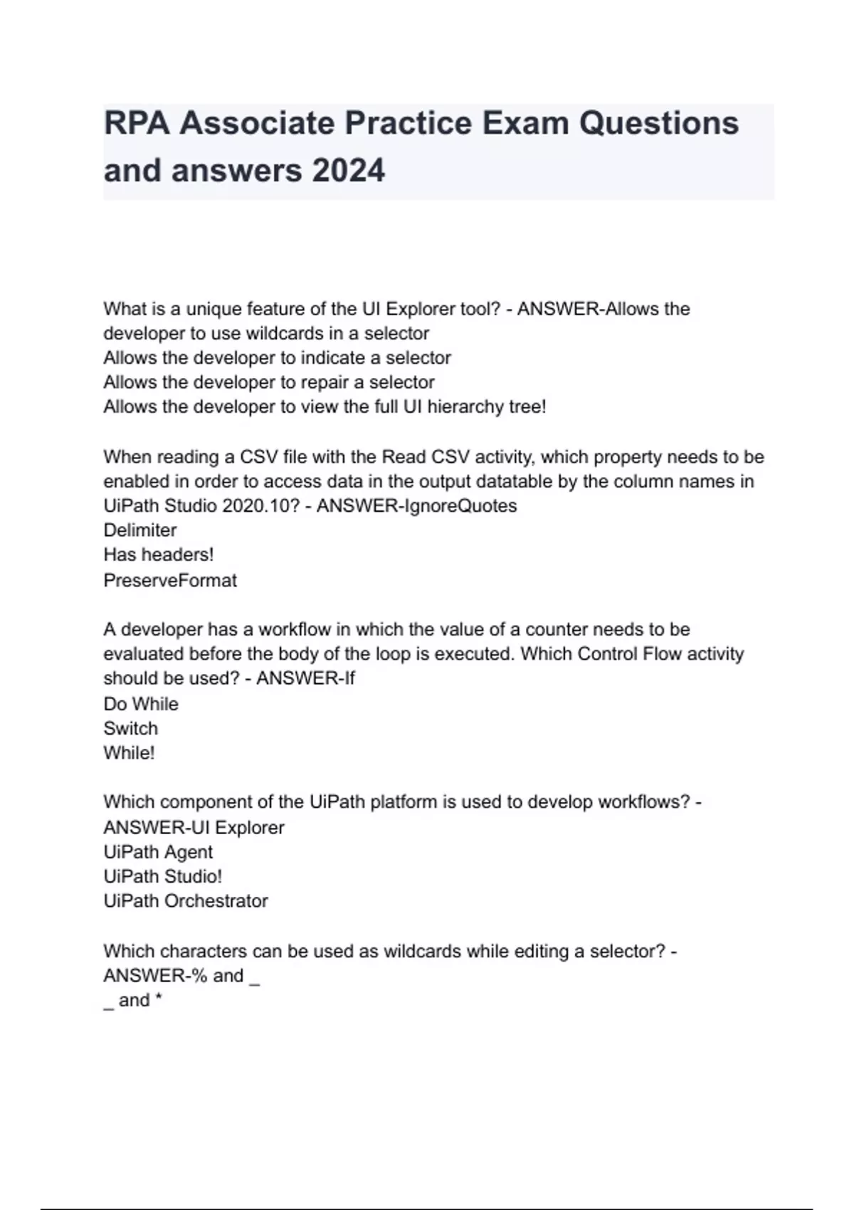 RPA Associate Practice Exam Questions and answers 2024