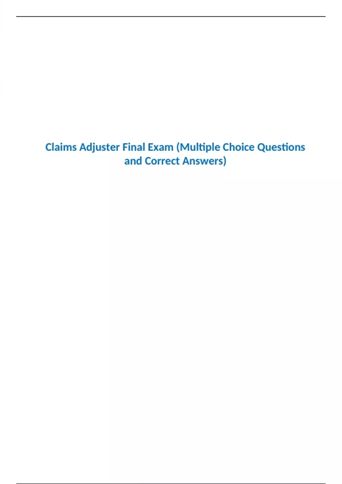 Claims Adjuster Final Exam (Multiple Choice Questions and Correct Answers)