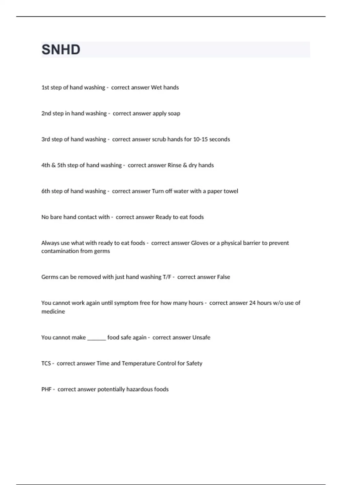SNHD with correct answers graded A+ 2024/2025