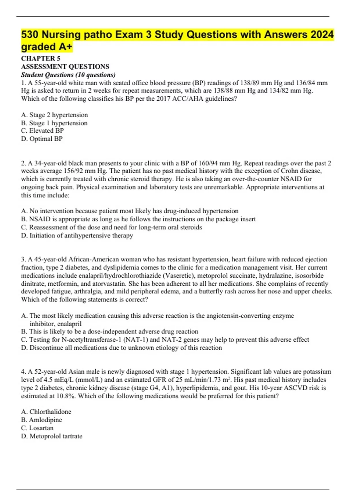 530 Nursing patho Exam 3 Study Questions with Answers 2024 graded A+
