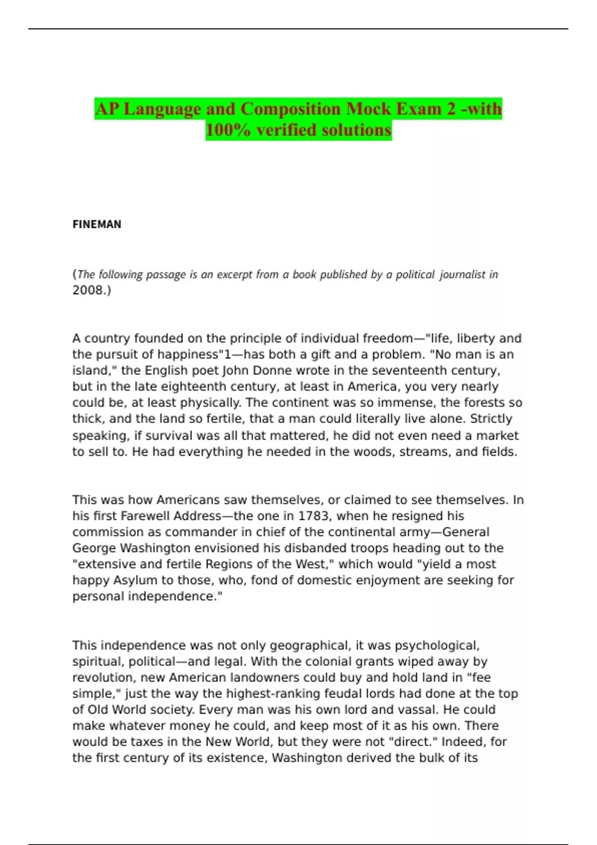 AP Language and Composition Mock Exam 2 -with 100% verified solutions