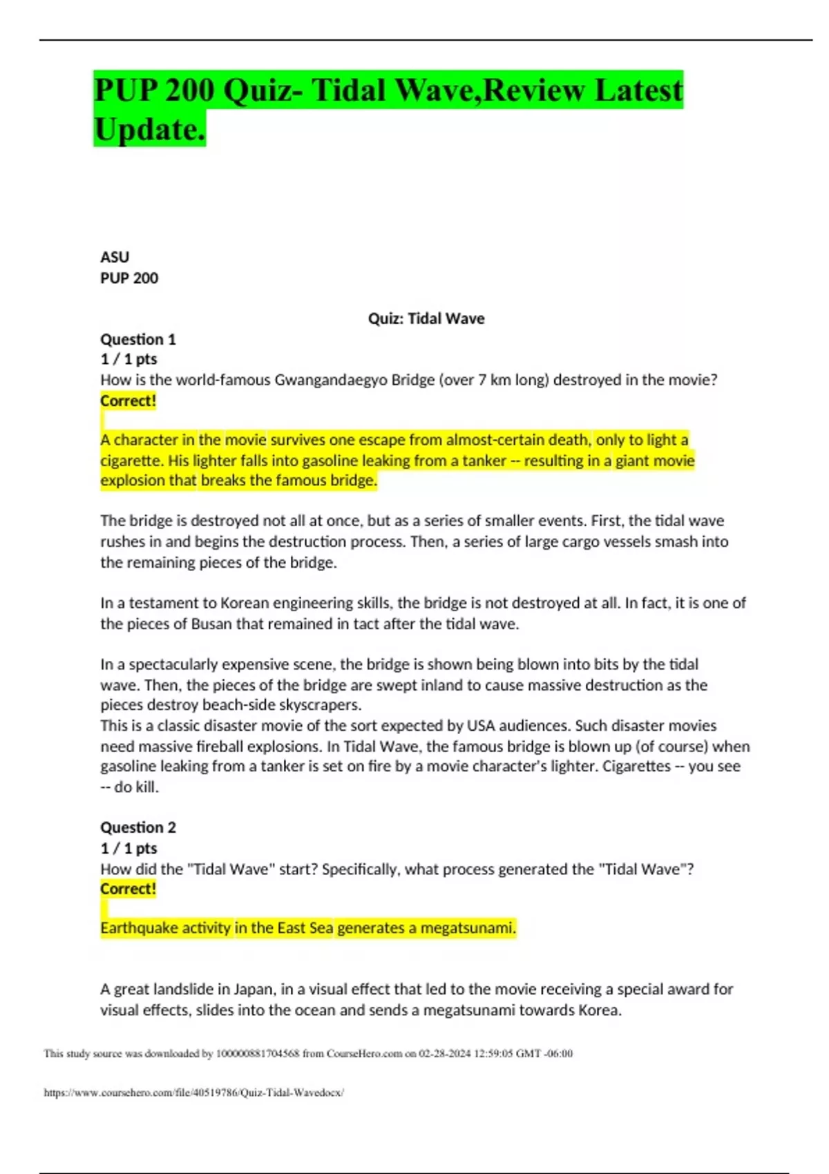 PUP 200 Quiz- Tidal Wave,Review Latest Update.