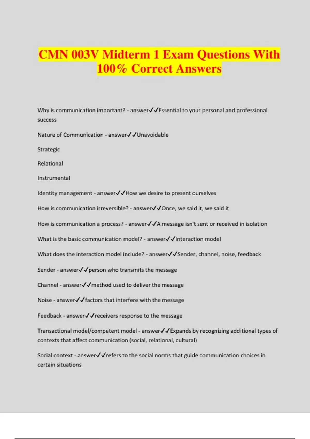 CMN 003V Midterm 1 Exam Questions With 100% Correct Answers