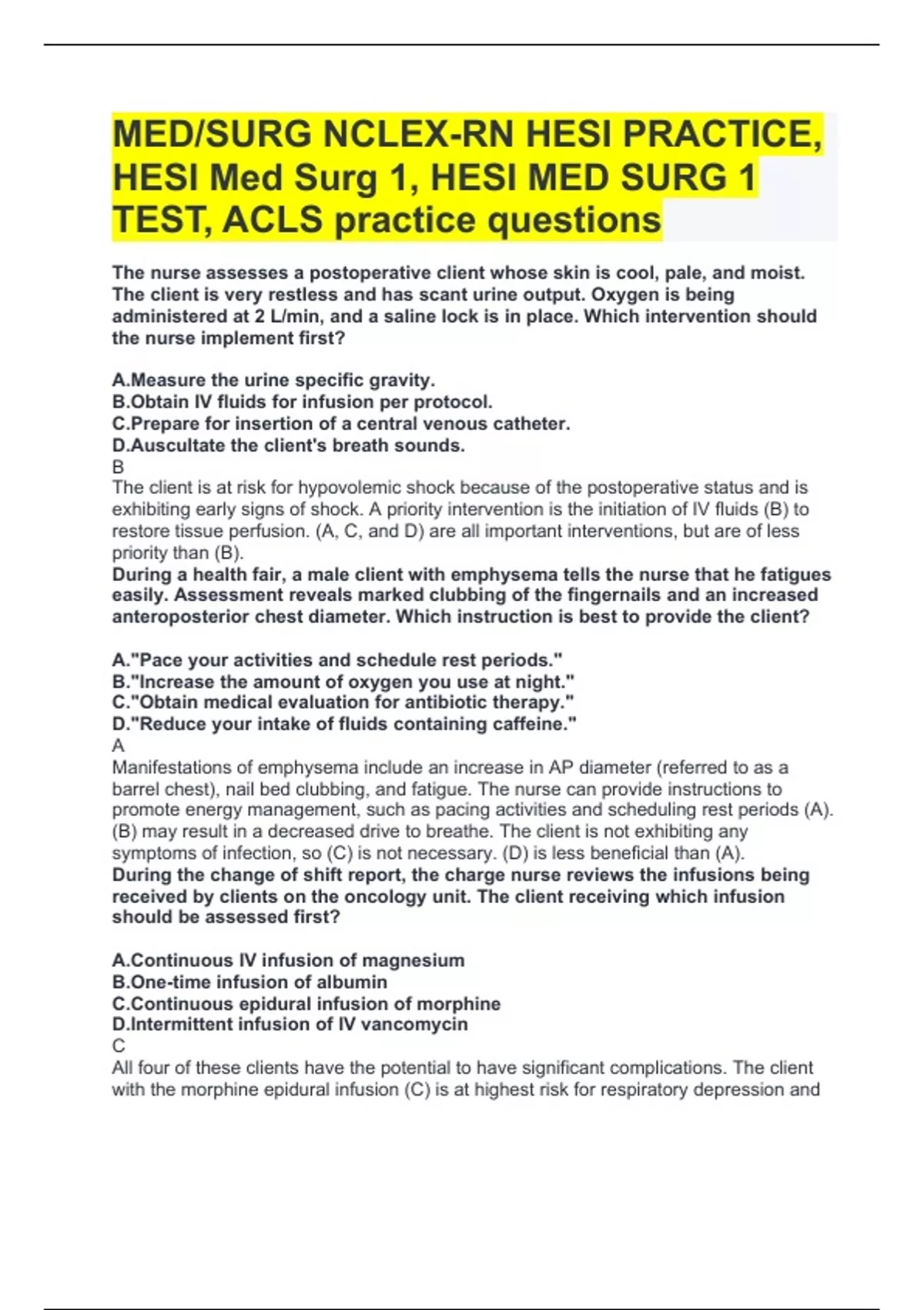 HESI Med Surg 1, HESI MED SURG 1