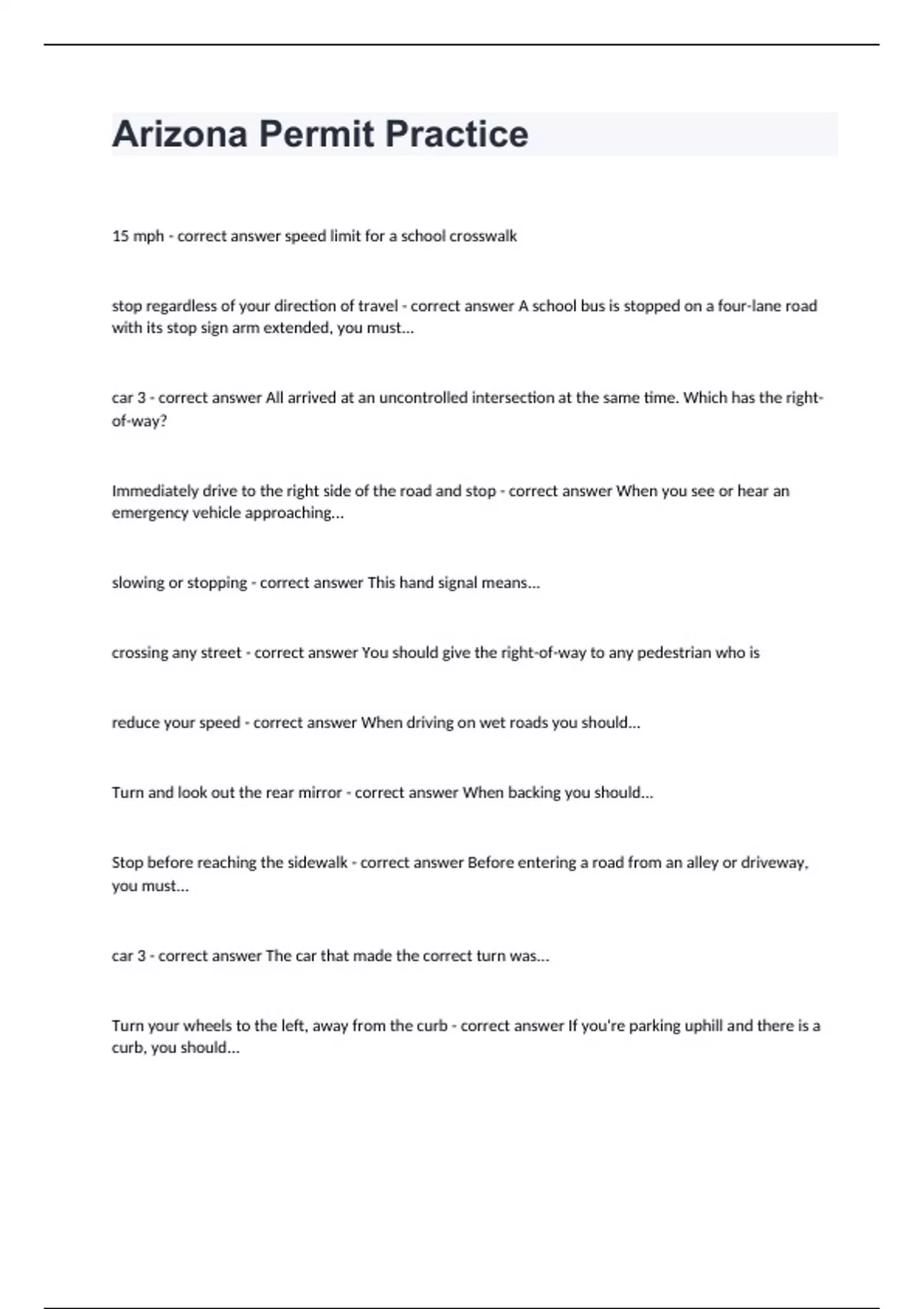 Arizona Permit Practice correctly answered graded A+ 2024/2025