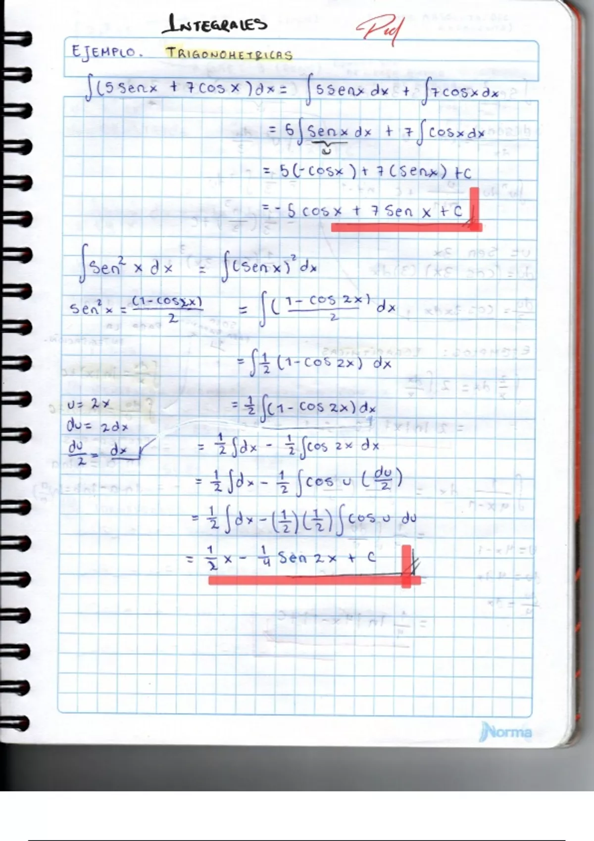 Se muestra solución paso a paso de integrales trigonometricas
