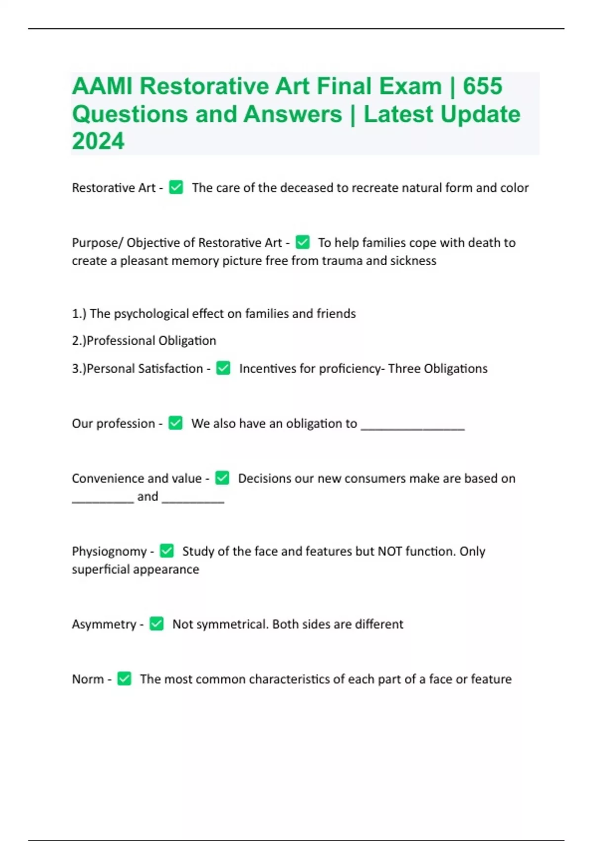 AAMI Restorative Art Final Exam | 655 Questions and Answers | Latest Update 2024