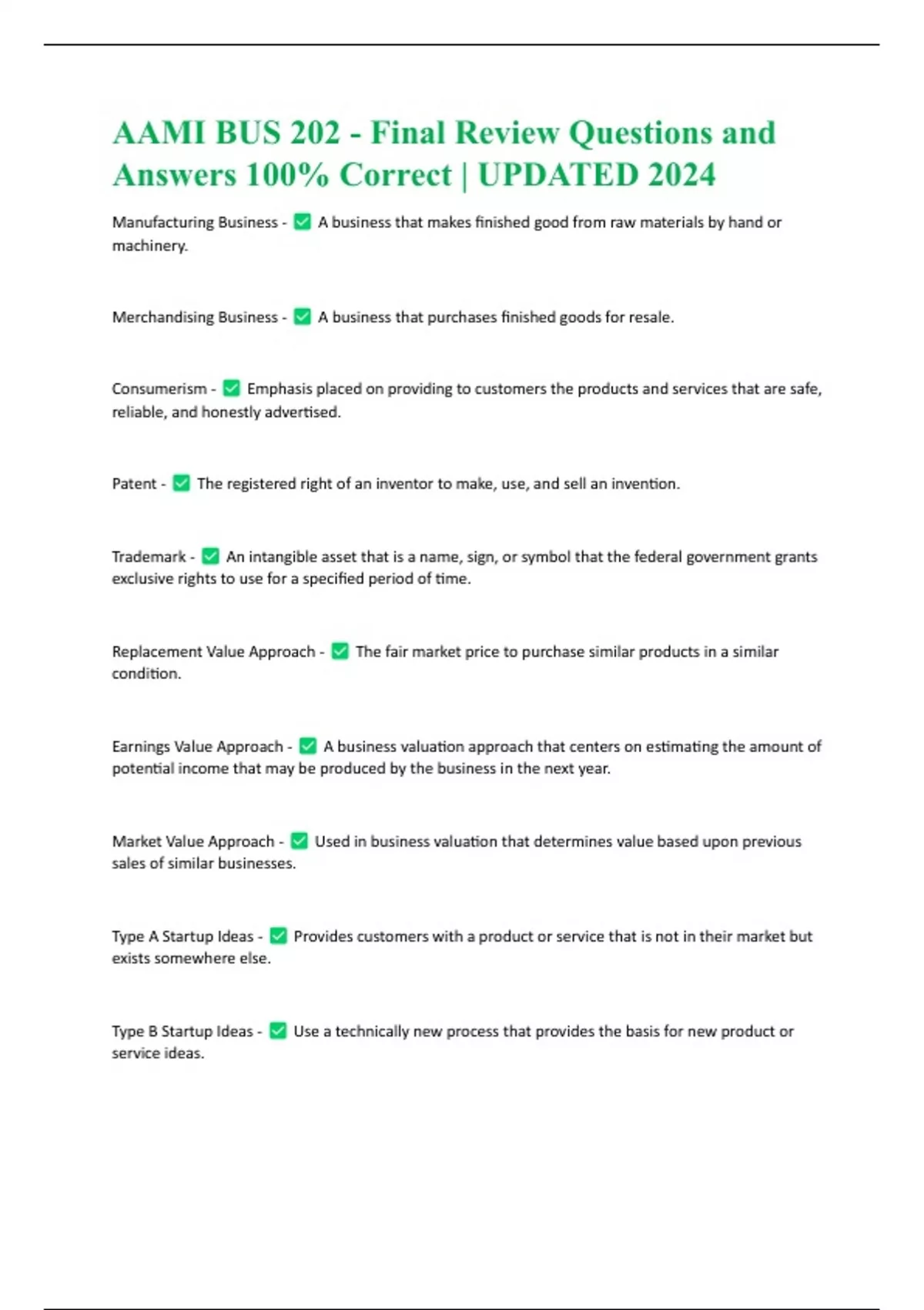 AAMI BUS 202 - Final Review Questions and Answers 100% Correct | UPDATED 2024