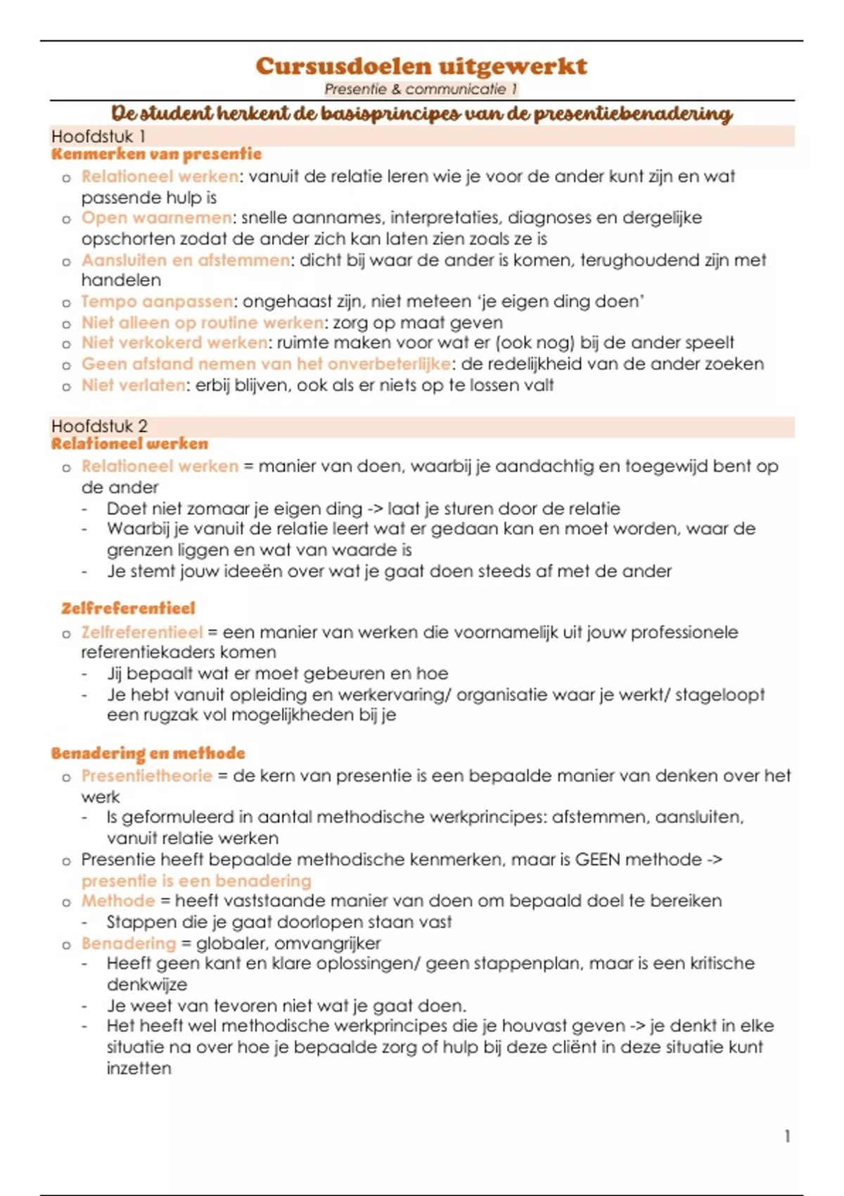 o Presentietheorie = de kern van presentie is een bepaalde manier van denken over het