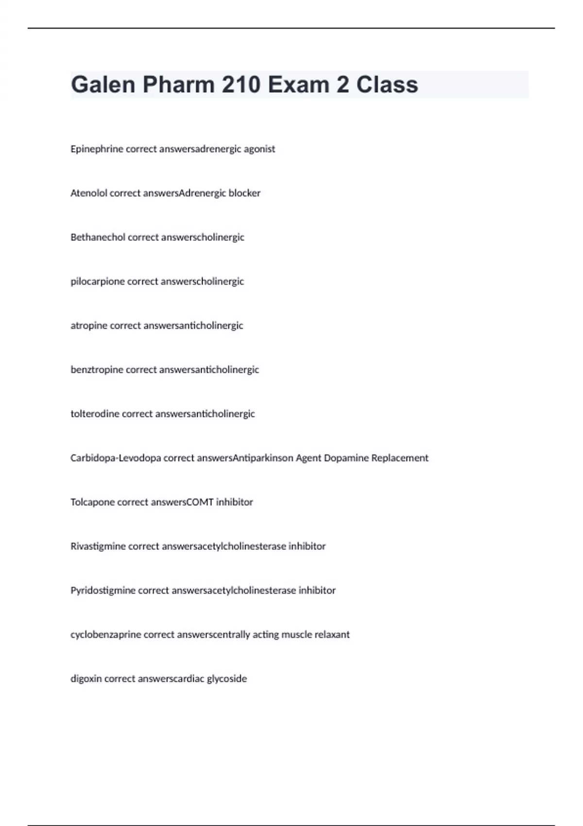 Galen Pharm 210 Exam 2 Class with verified solutions 2024
