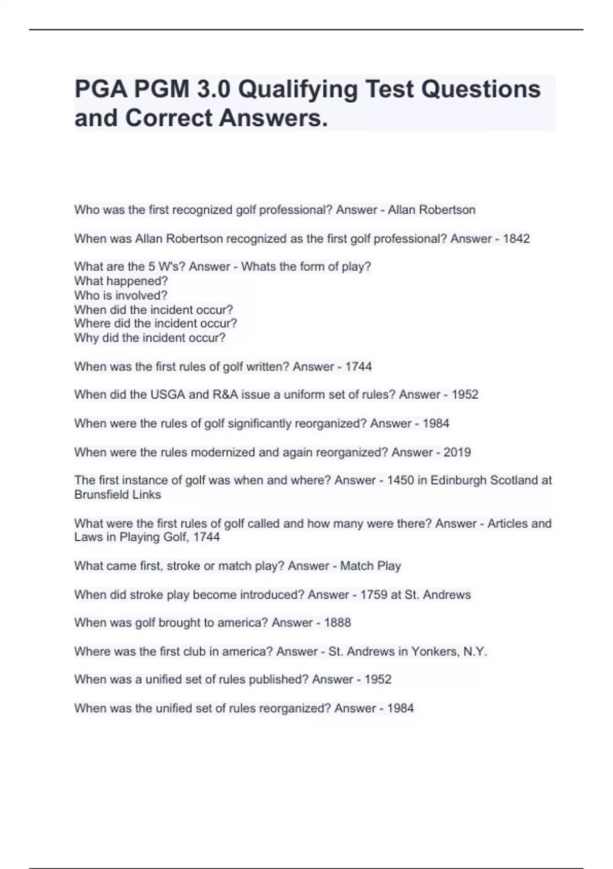 PGA PGM 3.0 Qualifying Test Questions and Correct Answers