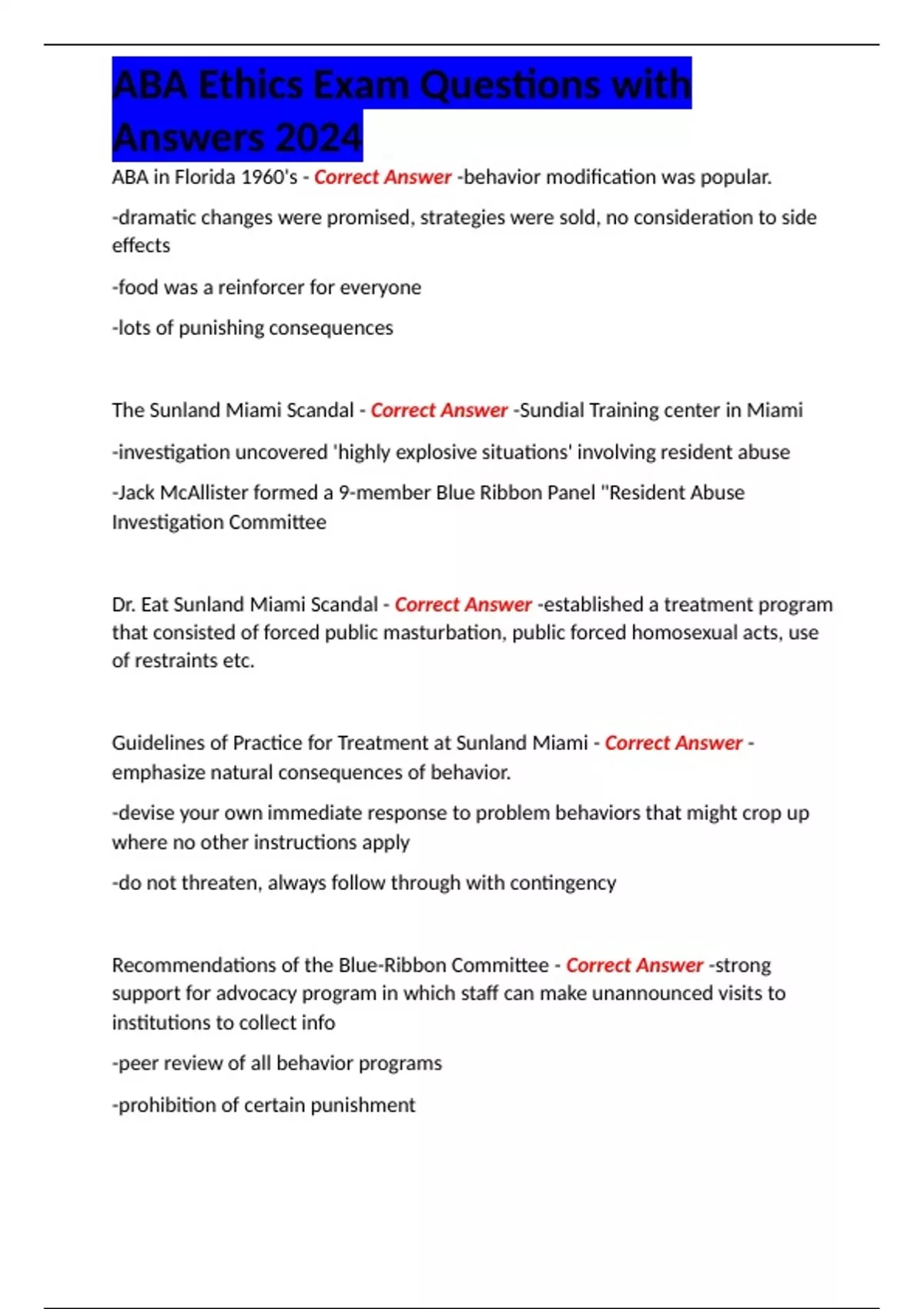Guidelines of Practice for Treatment at Sunland Miami - Correct Answer -